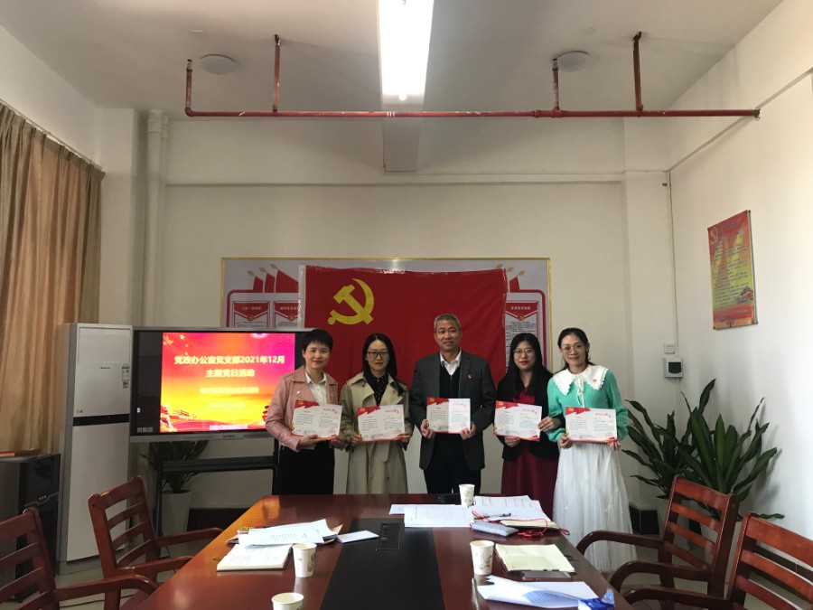 2021年12月2日,党政办公室党支部在图书馆六楼机关党员活动室开展2021年“牢记政治生日,不忘入党初心”主题党日活动🫱🏿,党政办党支部全体党员参加了本次活动,活动由党政办党支部书记聂玮主持。