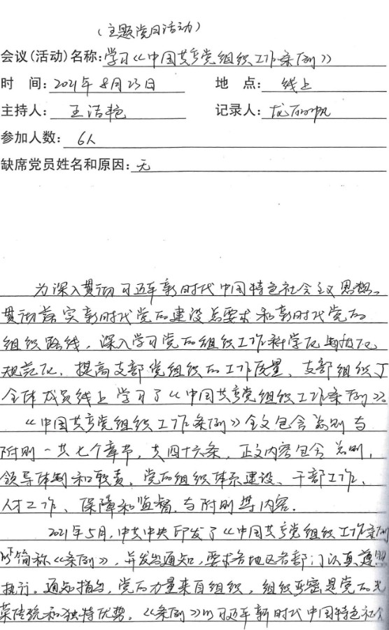 科研部党支部开展2021年8月份主题党日活动
