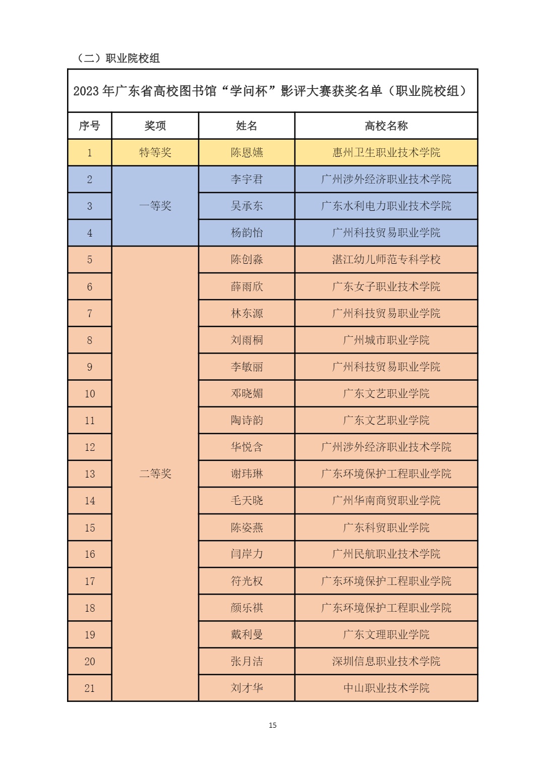 2023年广东省高校图书馆“学问杯”影评大赛获奖名单通知