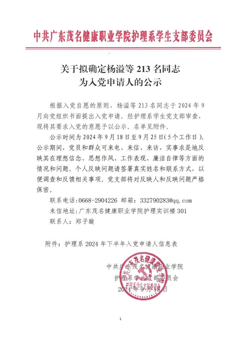 关于拟确定杨溢等213名同志为入党申请人的公示