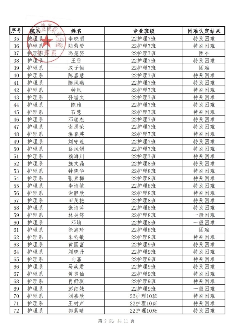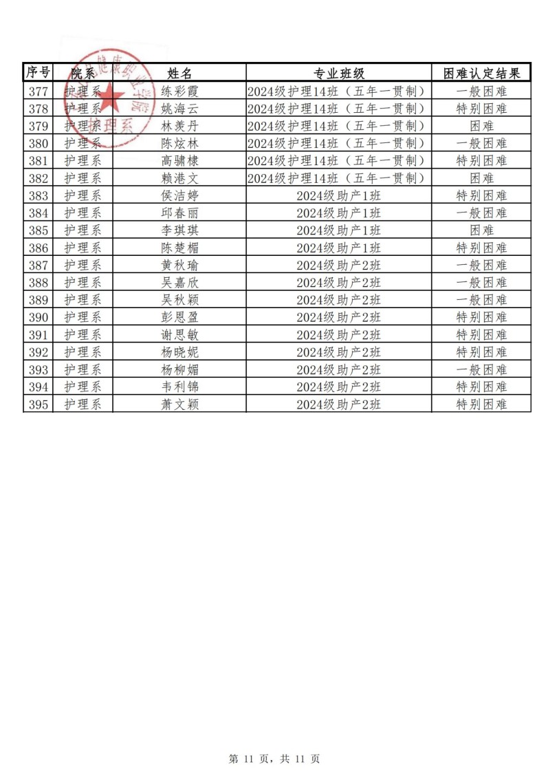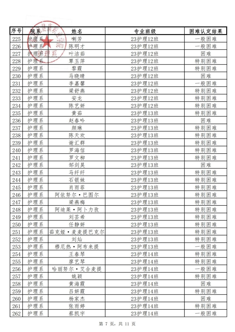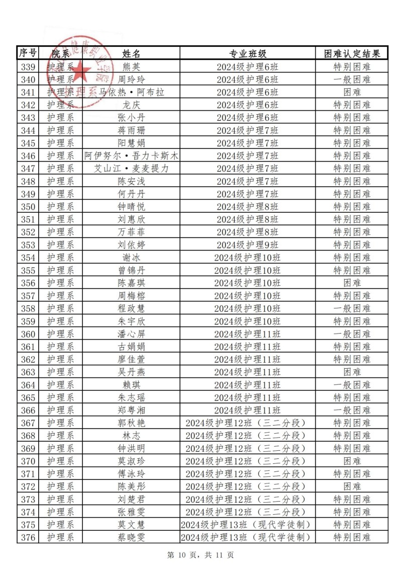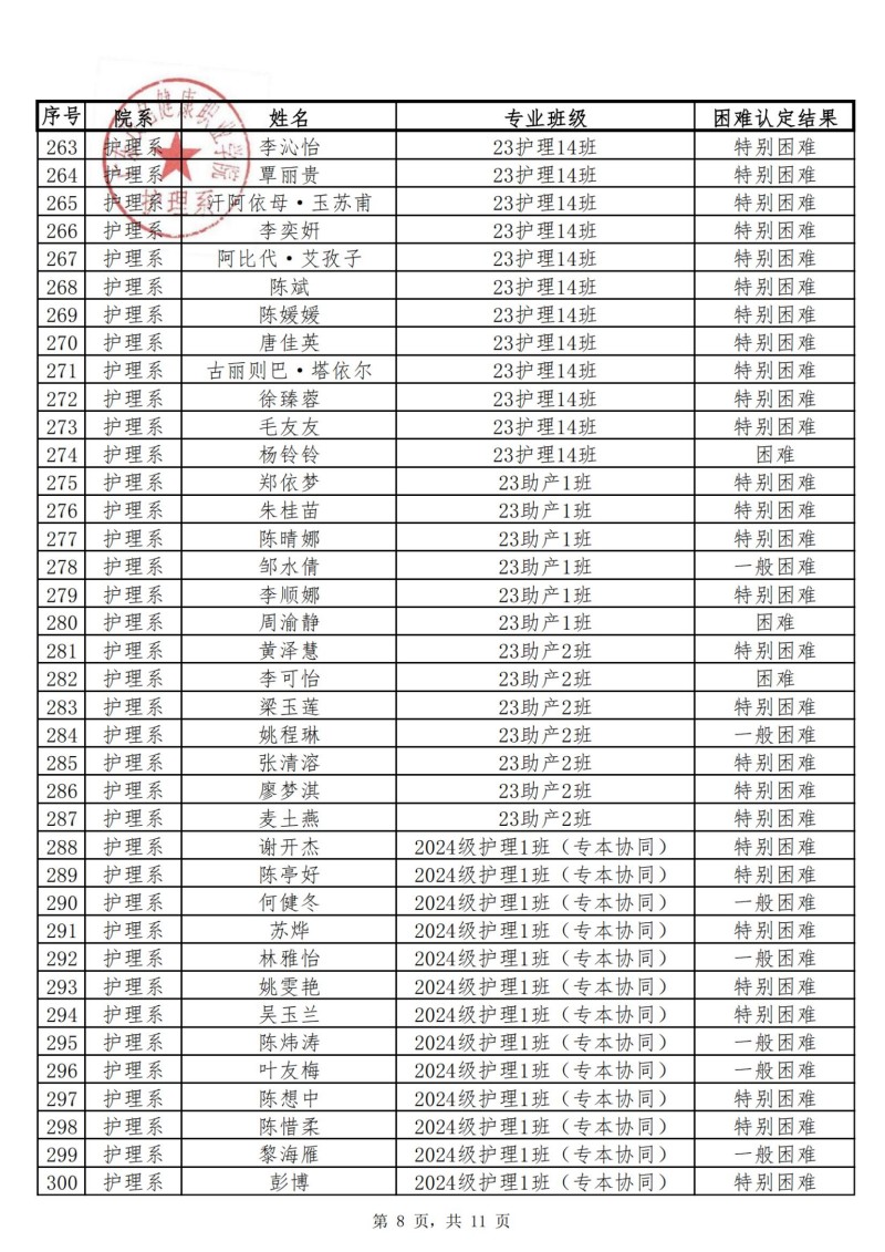关于护理系2024-2025学年秋季学期家庭经济困难学生认定结果的公示