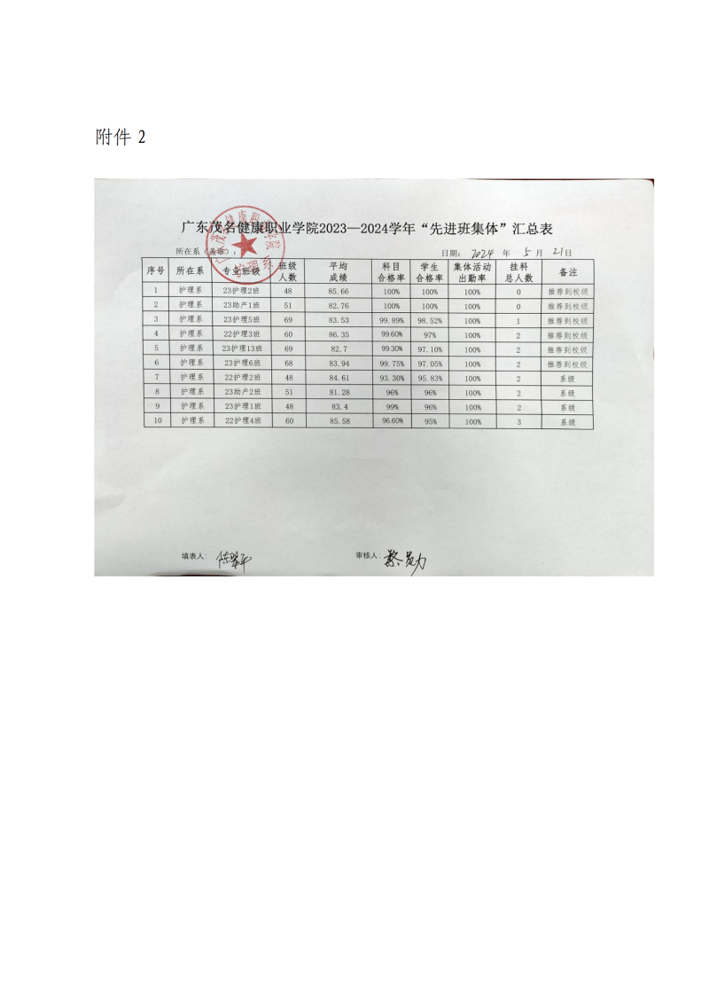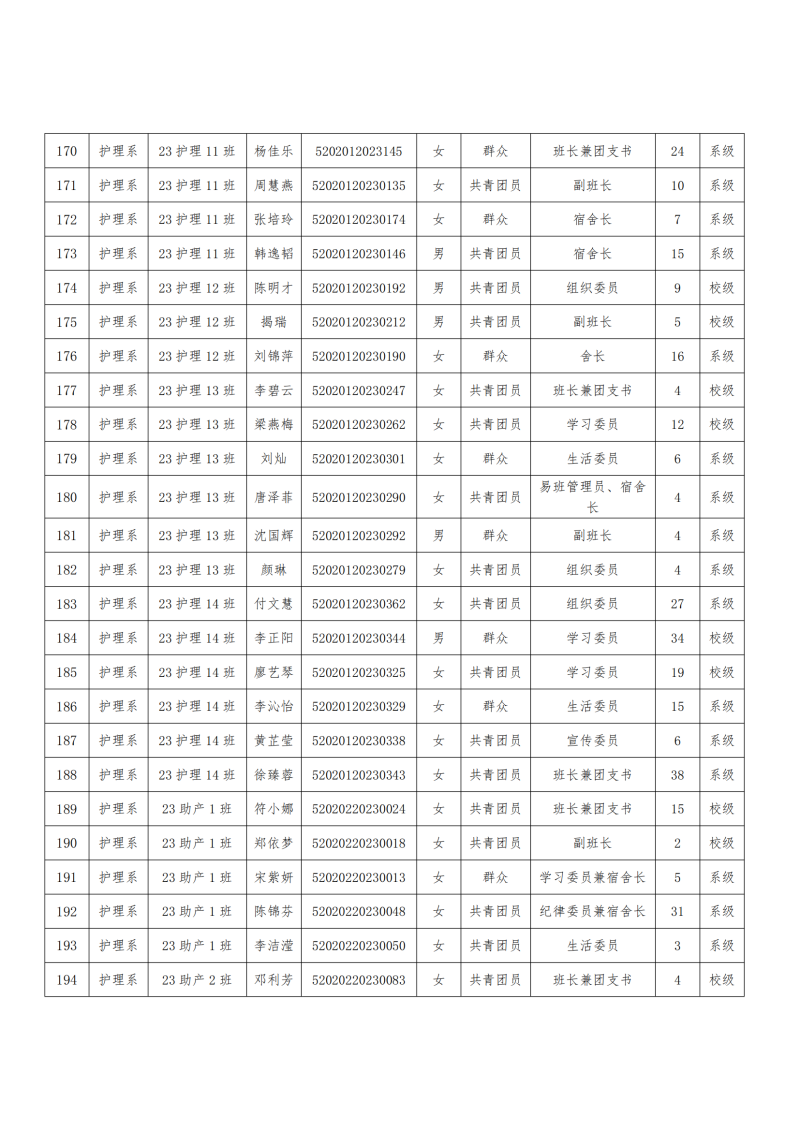 关于2023-2024学年护理系“优秀班干部”和“先进班集体”名单公示